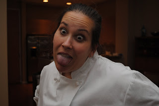 Cargo pants and a fancy chefs shirt. (what did you think I was going to wear pears and heels?  Yeah right, I’m not June Cleaver people)
