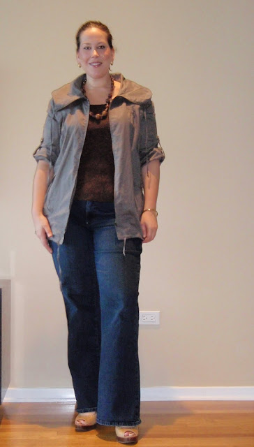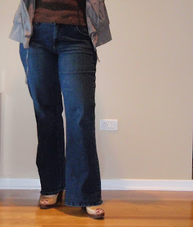 I had a couple of comments on Wednesday that my jeans were too big. I think it was the picture.  I’m wearing them today.  They do not gap anywhere and are not baggy either.  They are a wider leg jean, so they are not very snazzy with flats.  I’ll let you judge.