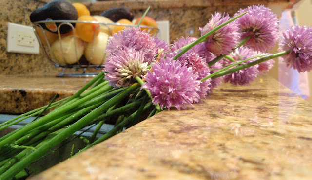 I got to move a chive bed at the Urban Farm where I volunteer at today.  During the move a few of the chives lost their life.  Because I hate to waste food (starving children in Africa people!) I scooped them up and brought them home with me.  Don’t worry there are enough weeds chives to top a baked potato  for the entire city of Chicago, I’m sure a few gone went unnoticed.