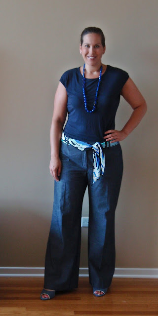 I love your necklace and scarf belt–great way to jazz up this classic look!