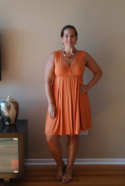 I also see that there is nothing redeeming about this dress other than the color. I like the orange. Beyond that, it doesn’t look very good on me. But it was clean and cool and I didn’t have time to change this morning if I wanted to get to work on time.