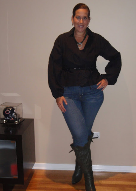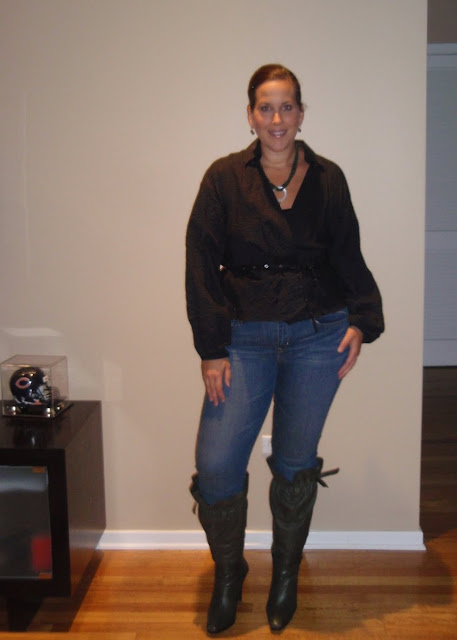 I took off the brown sack immediately after work and crawled into a pair of jeans and tall boots for book club. It was just a small group of us this month, but fun nonetheless.