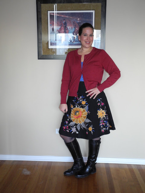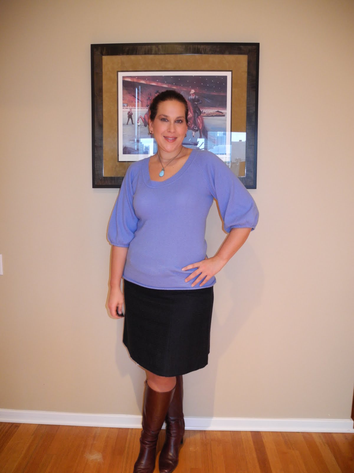 For me it’s a tie–the pleated black skirt with the white top (so classic and pretty) and the blue dress (such a stunning dress!). And I’d be surprised if very many people are able to lose weight in December. Too many temptations everywhere!!