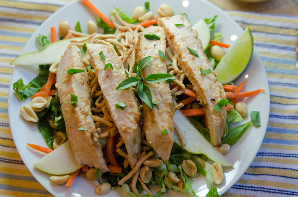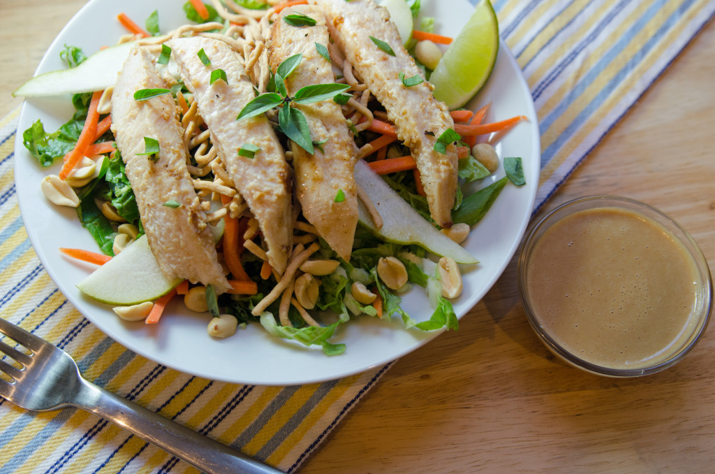 If you read this blog regularly you know that I LOVE SALAD. But unlike pizza, not all salads are good. Overly dressed and wilted vegetable salads are gross. To be a great salad, you need fresh crispy vegetables, complimentary toppings and a really good dressing that enhances all the flavors. This Asian Peanut Chicken Salad has all that and more. It is filling as a dinner salad and leftovers travel well, even dressed, for lunch the next day.