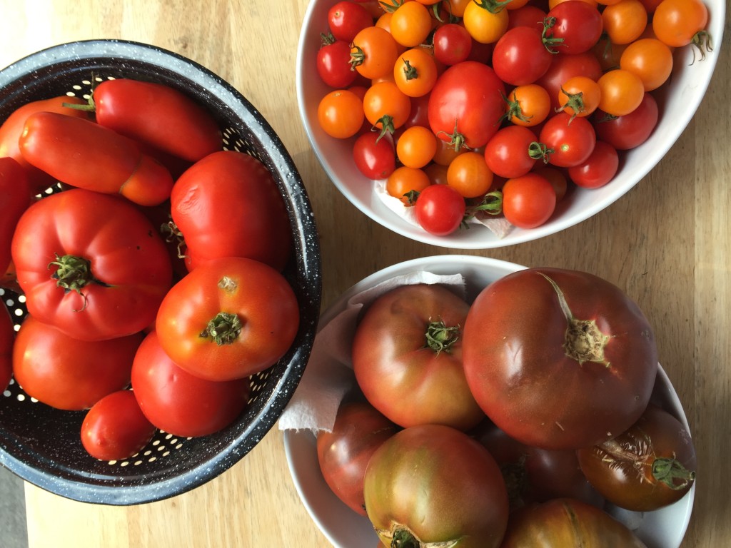 As fall harvests are in full gear, end of summer tomatoes are abundant.  In my opinion, extremely ripe tomatoes, almost to the point of spoiling but not quite, make the best salsa.  Uttermost ripe tomatoes are sensationally sweet and juicy.  Using tomatoes at their peak ripeness means your salsa will not be overpowered by spicy hot jalapenos, fresh cilantro or aromatic garlic.  Rather all the ingredient will compliment each other and create a flavor explosion of spicy, sweet, fresh and hot.