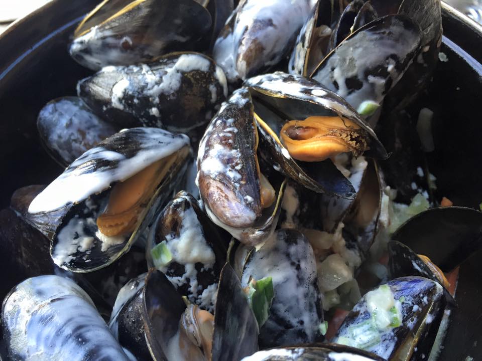 Our first day in Brussels Charlie and I shared a delightful pot of moules (mussels) for dinner.   After shopping at Pierre Marcolini for chocolates, we stopped at a café on the square. I ordered our mussels in a non-traditional garlic cream sauce. It was a perfect pot with chopped garlic and fresh cream poured over plump steamed mussels. If you’re visiting Belgium in the summer don’t expect to see mussels on the menu, mussels are a seasonal dish and typically only served from September to February.