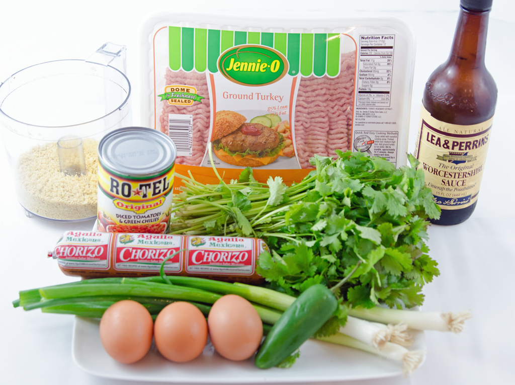 1. Make sure to buy Mexican Chorizo.   Spanish Chorizo (while tasty) is cured and won’t combine without some serious grinding with the other ingredients. Make sure to use lean turkey, Chorizo has a quite a bit of fat and the meatloaf will be greasy if you use a higher fat meat.  Ingredients Turkey Chorizo Meatloaf