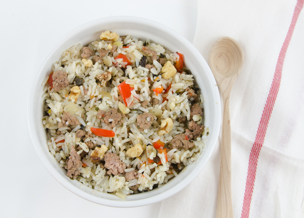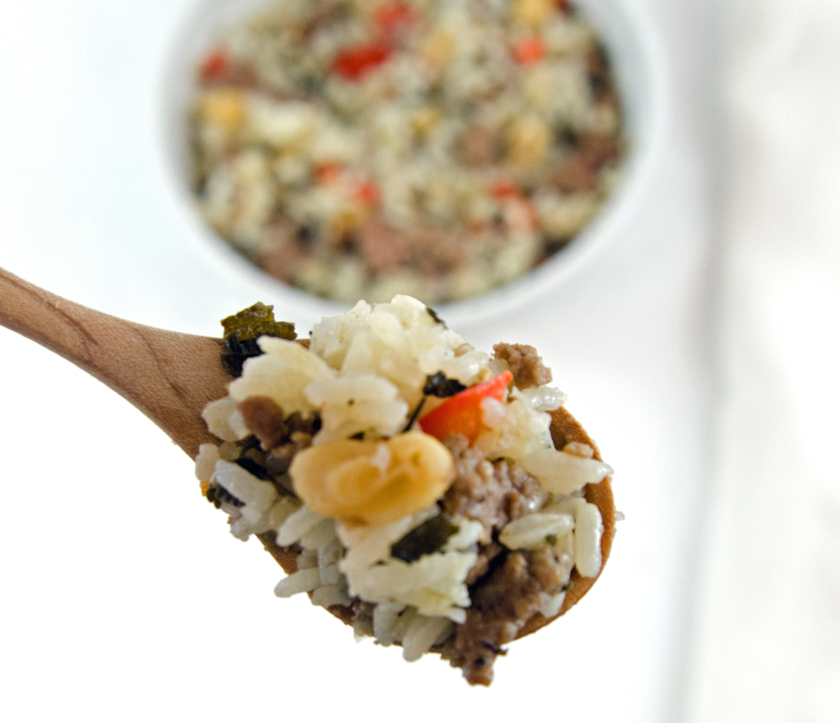 Lately I’ve been on rice kick.  I’ve been experimenting with ways to jazz up rice.  When I originally made this dish I omitted the ground lamb and served the rice as a side dish with pan roasted chicken (delicious too).  The following day I took a hodge lodge of leftovers to work. I packed a burger and the rice.  I ate the burger on top of the rice and it got me think how tasty the rice would be with ground lamb mixed in.