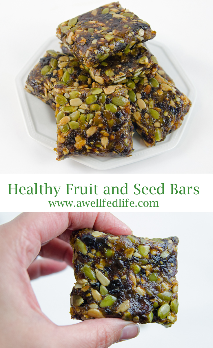 I love dried fruit, nuts and seeds. And together they are magical. So magical that once I start eating them their powers take over me and I cannot stop. Alas, I love granola, trail mix and fruit and seed bars. Since I know myself very well I typically don’t keep granola or trail mix in the house and if I do I need to keep it in single serving portions. Fruit and nut bars, nicely come in single serving portions but I find that if they can be dry and lack big fruit flavor which is why I make my own. Not only can I control the flavors I can also control the ingredients.