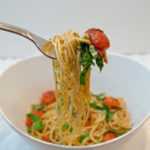 Dinner in 20 minutes, Boom! Blistered Tomato Basil Pasta. I love this incredibly easy and flavorful pasta dish. It’s my go-to I don’t feel like cooking but want a home cooked meal dinner. Sometimes I get fancy and eat it with a chicken. But mostly, I just eat it as is. With summer around the corner and fresh vine rippen tomatoes available this is a perfect dish summer pasta dish.