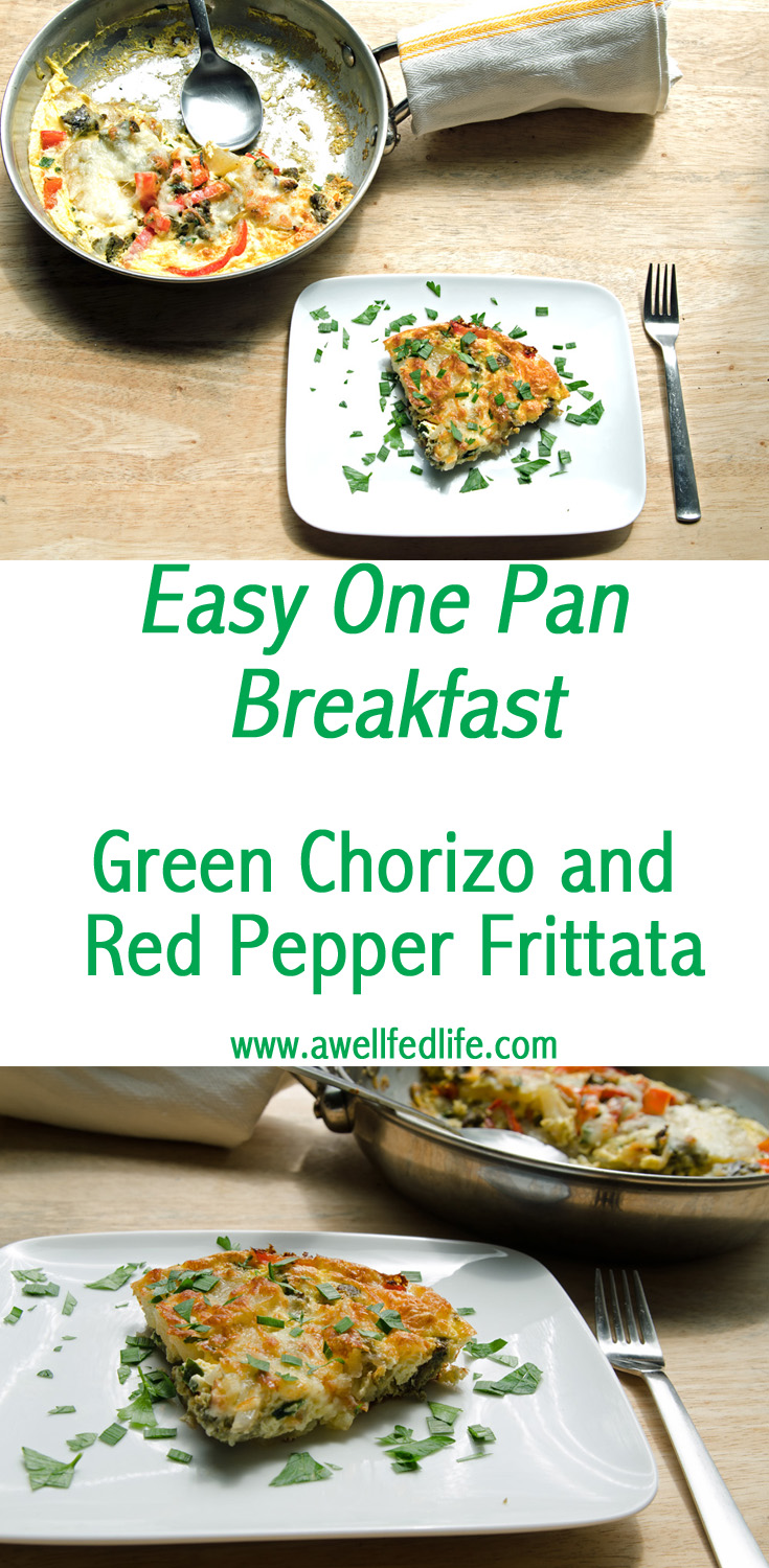 Last week I spied some green chorizo at the butcher shop and decided I wanted to make a special dish out of it. Green Chorizo (which I prefer over the red kind) is made with tomatillo, cilantro, chili peppers, garlic giving it a fresh flavor with a bit of kick. It is different from the red stuff which has more of smokey flavor. Green chorizo in my opinion is more mild but has great flavor to pair with eggs making it a prefect ingredient for a frittata. So, in celebration of Father Day last weekend I cooked up this special Green Chorizo and Red Pepper Frittata for my fur baby daddy.