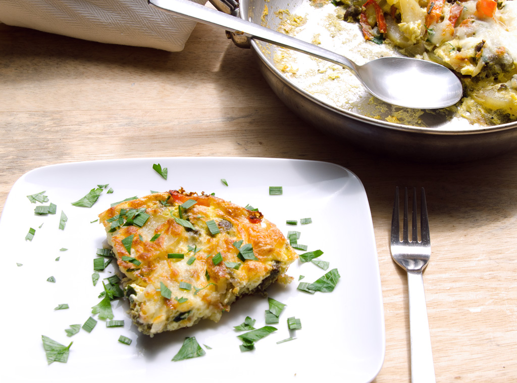 If you’re counting calories, or looking to lighten this dish up you can substitute half the eggs for egg whites and omit the cheese. Even with these tweaks, the dish will still have great flavor.