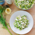If you follow me on Twitter or Instagram (if you don’t you should – Follow @awellfedlife), you know that last week I spent the entire weekend in Memphis, Tennessee eating barbecue. I actually ate so much Q that at one point I contemplated if BBQ sauce was running through my veins. So, when I arrived back home all I wanted to eat were vegetables. This Brussels sprout salad with feta cheese and pistachios fit the bill. Full of bright dill and lemon, the salad is fresh and makes a great side dish for grilled meat or fish.