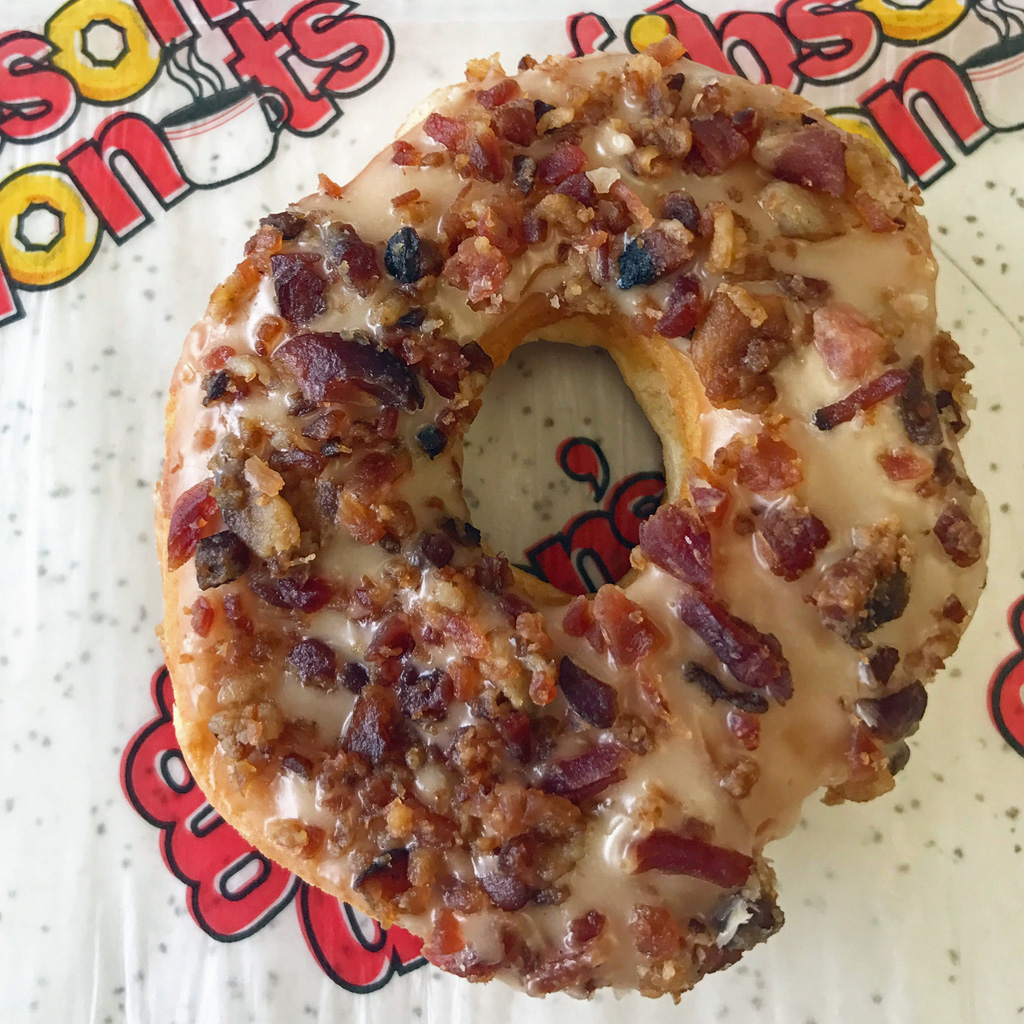 The photo above is a bacon sprinkled donut.  I am going to stop right there because you need no further information as to why you should go to Gibson’s Donuts.