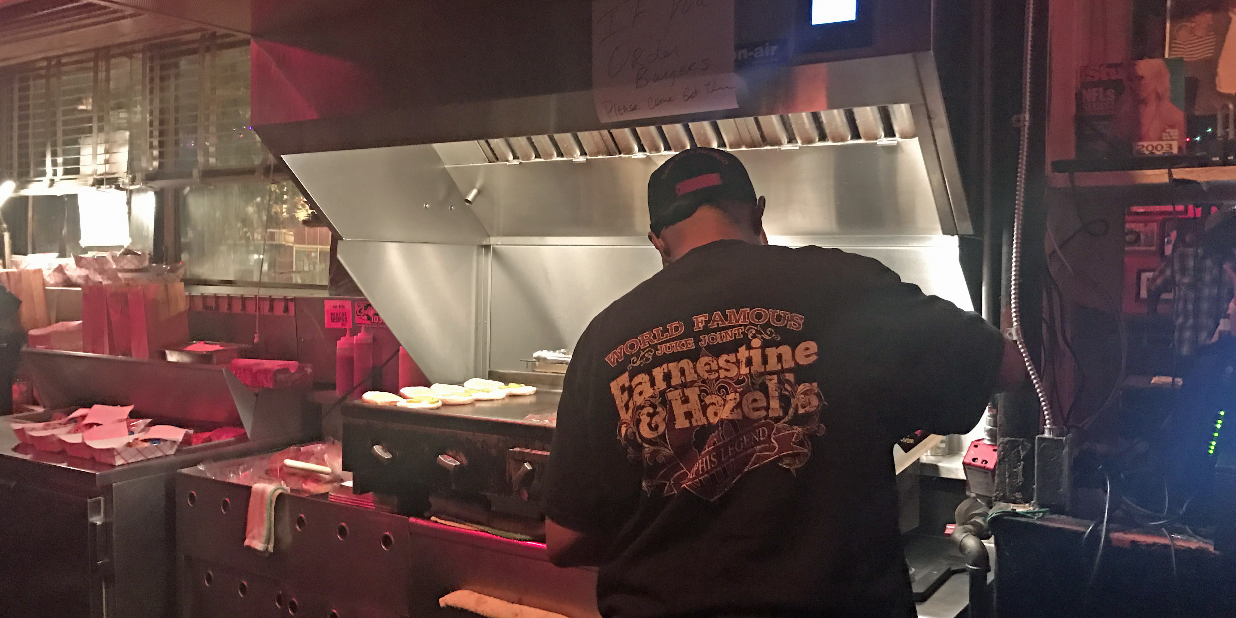 If you find yourself downtown late at night in search of a beer and in want of a burger, I suggest stopping in at Earnestine & Hazel’s.  E&H (as many refer to it) is an old-school juke joint turned dive bar. Rumor has it the place is haunted.  However, I didn’t see, hear or feel any ghosts. And, the jukebox didn’t play any special songs to me while I was there either.   There are two items on the menu at E&H, cold beer, and burgers.  The burgers are made directly behind the bar and they come one way, — a bun, patty, onions, cheese, pickle, and “Soul Sauce.