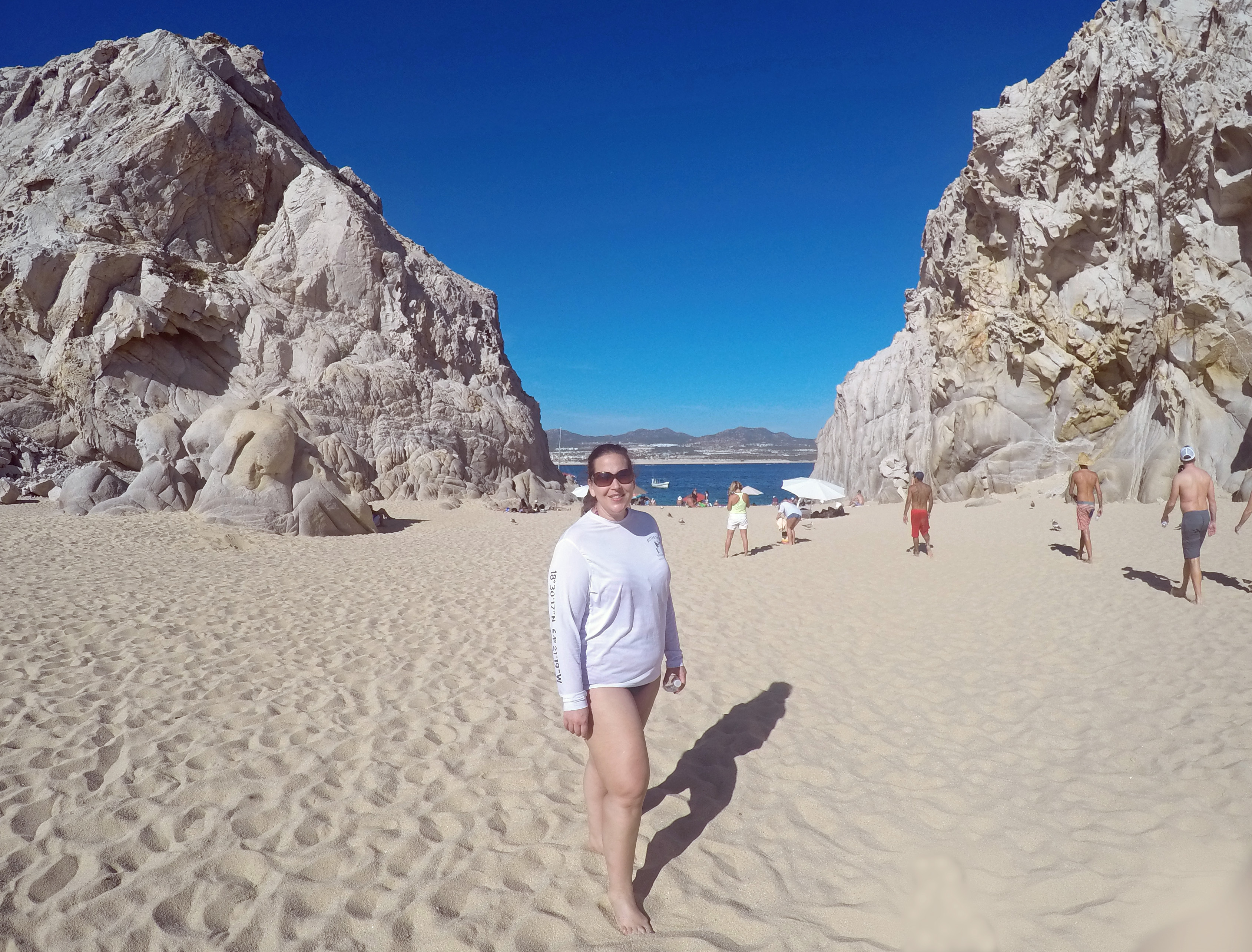 We docked at Lover’s Beach (sea of Cortés side) and walked over Divorce Beach (Pacific side). Lovers/Divorce Beach is one of the few beaches in the world that actually connects with two different bodies of water, the Pacific Ocean on one side and the Sea of Cortés on the other. Lover’s Beach gets its name for its pretty calm waters. While a few short steps away over the sand mound, Divorce Beach has waters that can be VERY dangerous with rip tides, undertows, big waves.