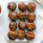 These meatballs are extremely versatile. I use these in lettuce wraps, over noodles or served with a whole grain to make a Buddha bowl. They also make a tasty sandwich on a fresh baguette with some shredded carrots, cilantro, and red onions. You can make a large batch of these meatballs, change up how they are served and you won’t get tired of eating them. If these meatballs did the dishes you might want to marry them. Yes, they are that amazing.