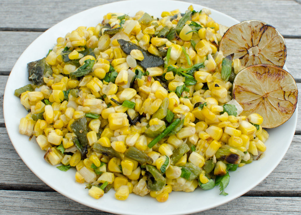Roasted Corn Salad with Poblano Peppers and Grilled Limes